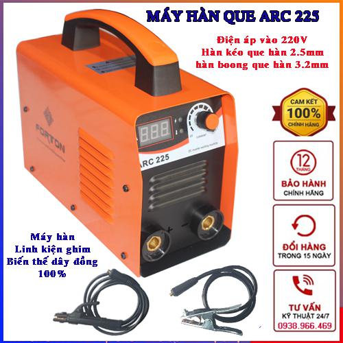Máy hàn Que ARC225A hiệu Forton là dòng máy có kết cấu và thiết kế đơn giản tinh tế, trọng lượng tương đối nhẹ cho phép người sử dụng có thể dễ dàng di chuyển đến những vị trí khác nhau phục vụ cho công việc khá thuận tiện.